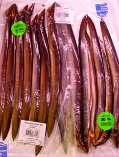 | smoked eel, anyone? they had herring, too, packed into little styrofoam coolers… |